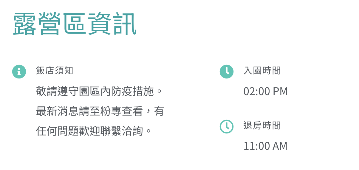 - 特殊節日:農曆過年、跨年當天 $11,888/帳 含4人費用 ( 一泊二食 + 含萌寵同行露營樂活動套組 )