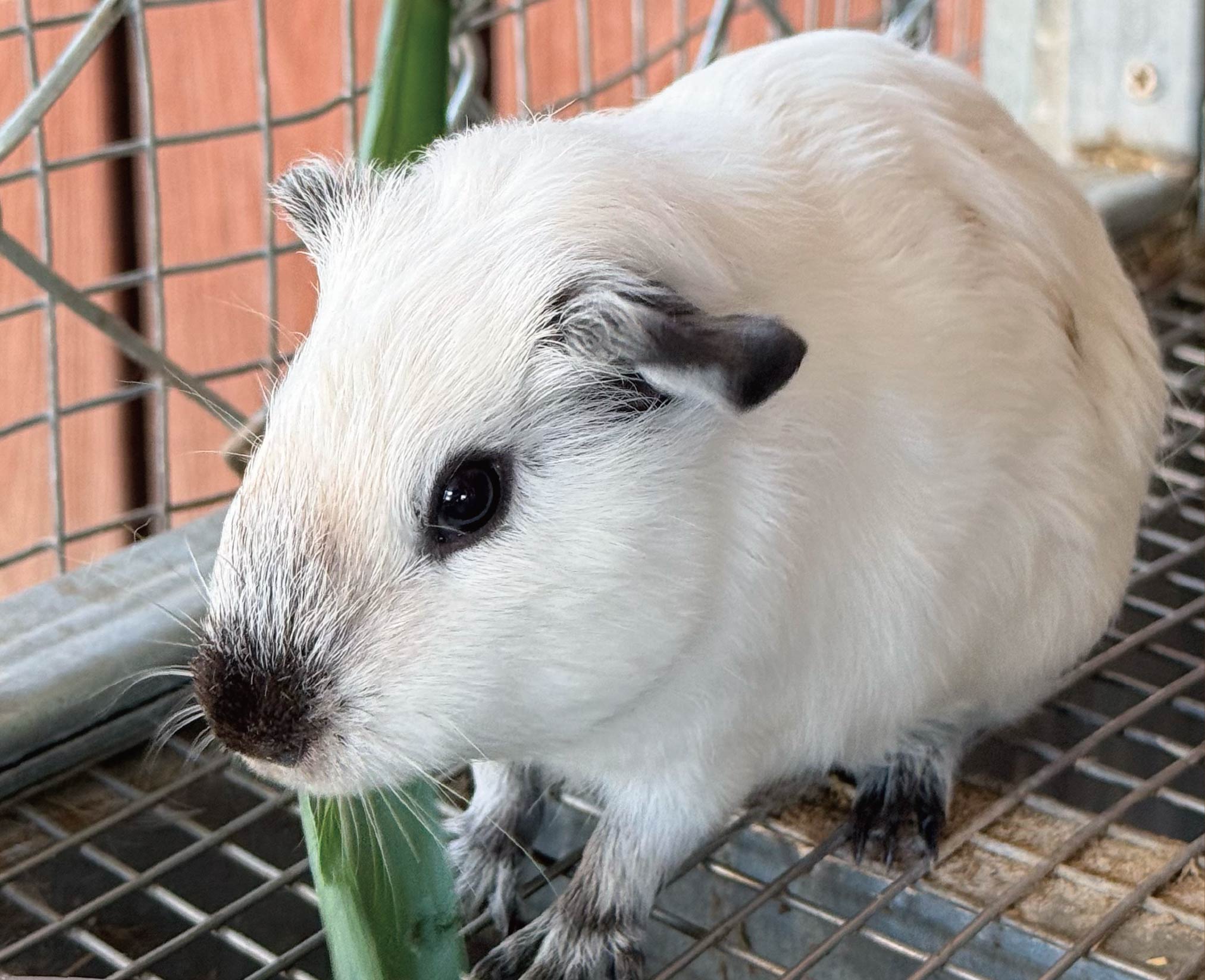 擁有雪白身體與深色耳鼻腳,加州天竺鼠是天竺鼠界的「時尚對比系」萌寵代表。牠們不僅外型搶眼,還以穩定溫馴的個性,成為園區中人氣超高的小明星。