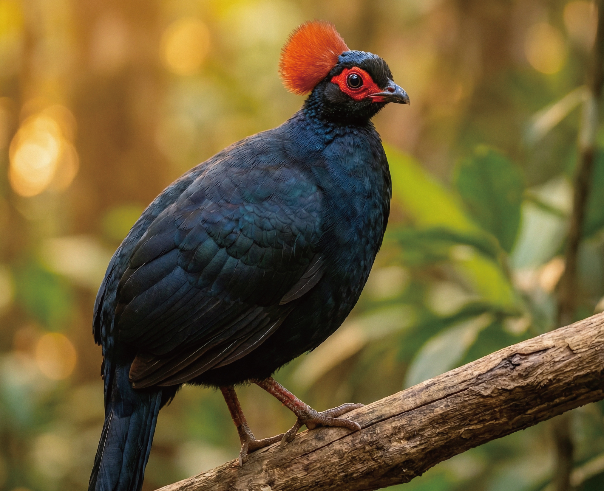 - 特徵:紅冠鷓鴣的頭冠鮮紅奪目,搭配灰棕色的羽毛及條紋腹部,展現出低調卻迷人的自然美。