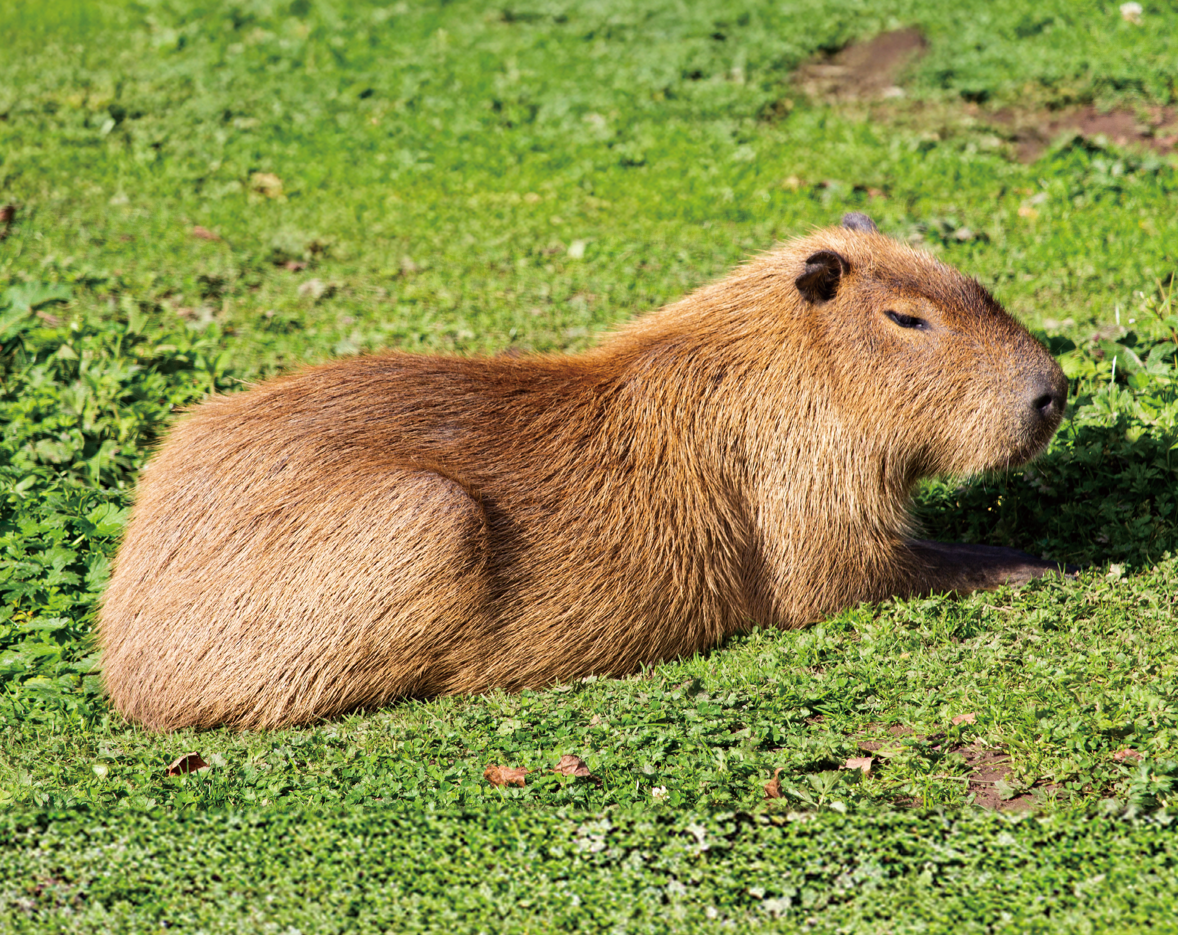 • 水豚君喜歡生活在水邊,能輕鬆游泳,甚至可長時間在水中屏氣,是牠們避暑與躲避天敵的絕佳本領。